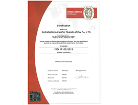 English深圳圣歐翻譯有限公司(統(tǒng)一社會信用代碼914403006820164473)位于深圳南山區(qū)高新技術(shù)園南區(qū),成立于2002年。圣歐翻譯公司專注于高端翻譯服務(wù):文件翻譯,口譯翻譯,同傳,外語配音和網(wǎng)站本地化,公司按照ISO17100翻譯質(zhì)量體系運(yùn)營。公司擁有全職員工有30余名,全球兼職翻譯專家數(shù)百名,他們有大學(xué)教授、企業(yè)翻譯精英,圣歐翻譯80%的員工是研究生學(xué)歷畢業(yè)以及留學(xué)歸國人員。 圣歐翻譯致力于為全球客戶提供高質(zhì)量的技術(shù)文檔翻譯、口語翻譯、同聲傳譯、同傳設(shè)備租賃、外語配音、網(wǎng)站本地化譯制;時至今日,圣歐翻譯為客戶提供翻譯文字超過120億和數(shù)千場口語和同傳翻譯服務(wù)。我們深知我們的工作質(zhì)量給您帶來的影響,所以,圣歐翻譯的翻譯和管理團(tuán)隊,始終強(qiáng)調(diào):譯文精確、行文流暢。我們借助輔助翻譯管理系統(tǒng),為每一個客戶建立獨自的專業(yè)詞匯庫和專業(yè)術(shù)語庫,保證翻譯術(shù)語的正確性和一致性。
